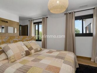 A l'étage : une mezzanine desservant 2 chambres confortables climatisées avec fenêtres de toit (volets électriques), une salle d’eau avec WC et une salle de bains avec dressing.
