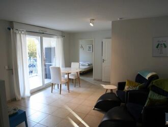 Dans résidence fermée, gardiennée avec piscine et espace vert, beau 2 pièces meublé refait à neuf avec terrasse et cave.