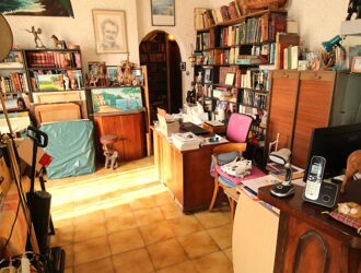 A l'étage: une entrée, un salon, une cuisine, 2 chambres, salle d'eau WC, un bureau et un balcon.